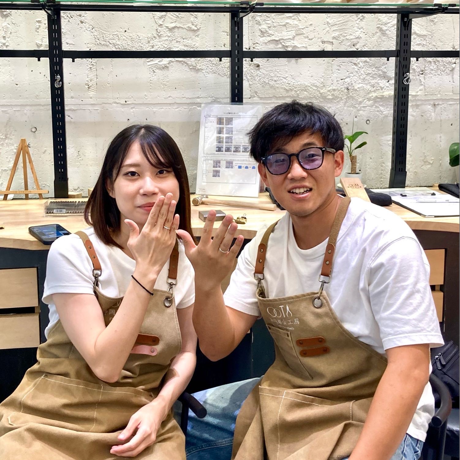 彼は男らしい無骨なリングができ、彼女様は見本にたいに綺麗なできで、お2人らしい素敵なリングができたと思います✨